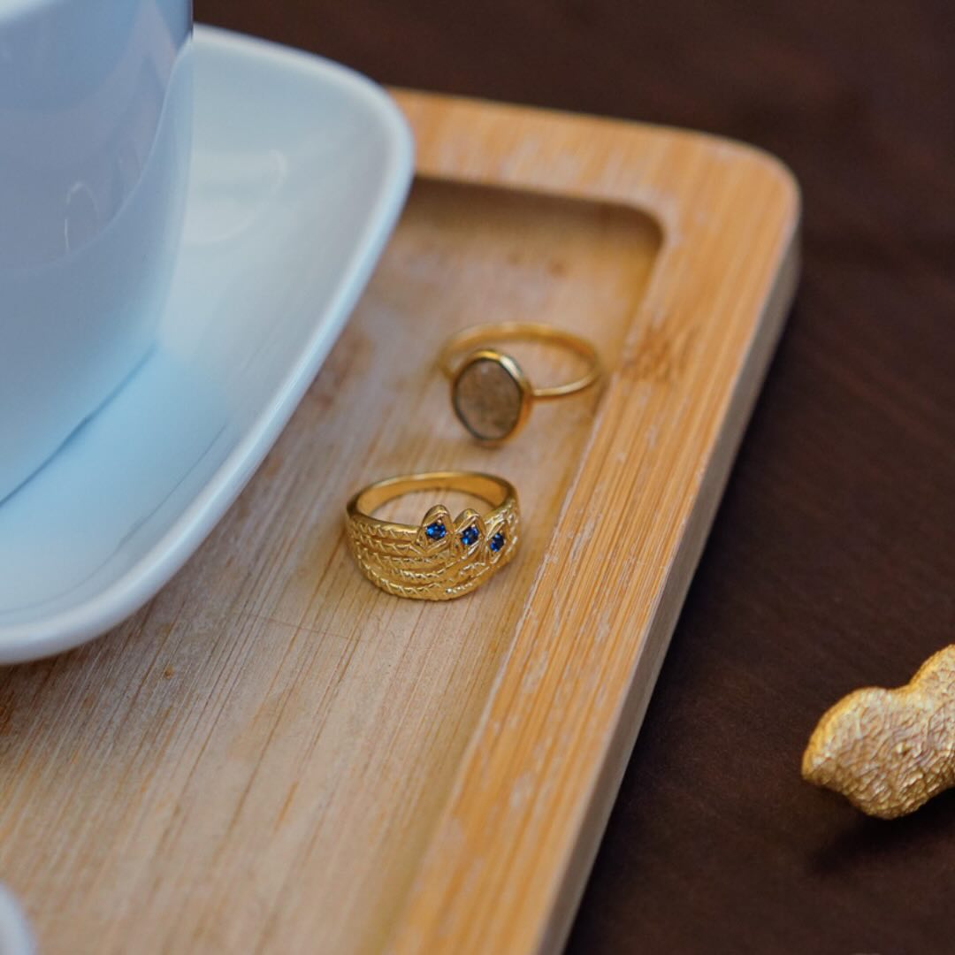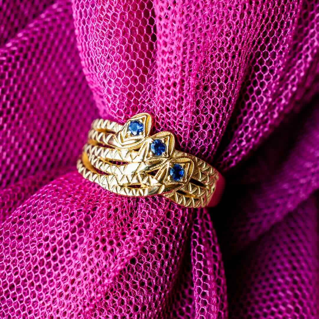 Bague en argent plaqué or avec 3 serpents et 3 topazes Blue London
