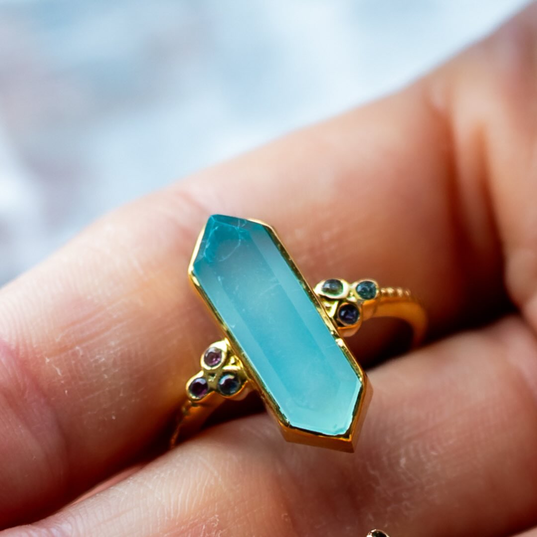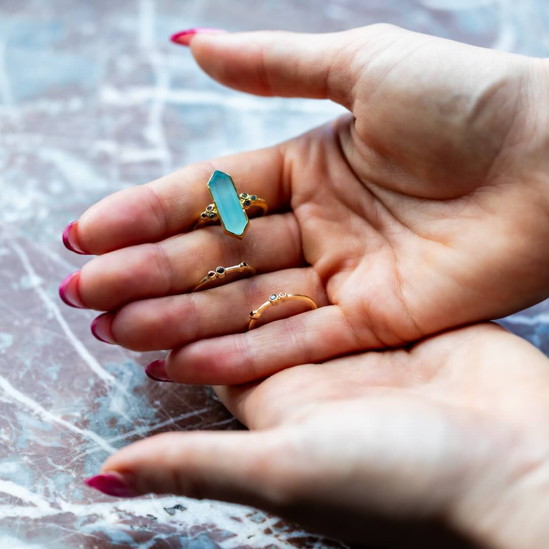 Bague en argent plaqué or, calcédoine et minis trouamliens