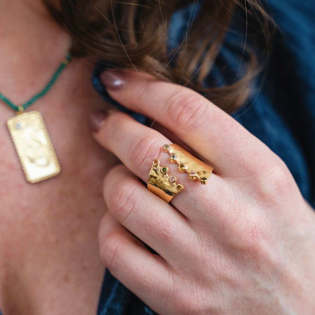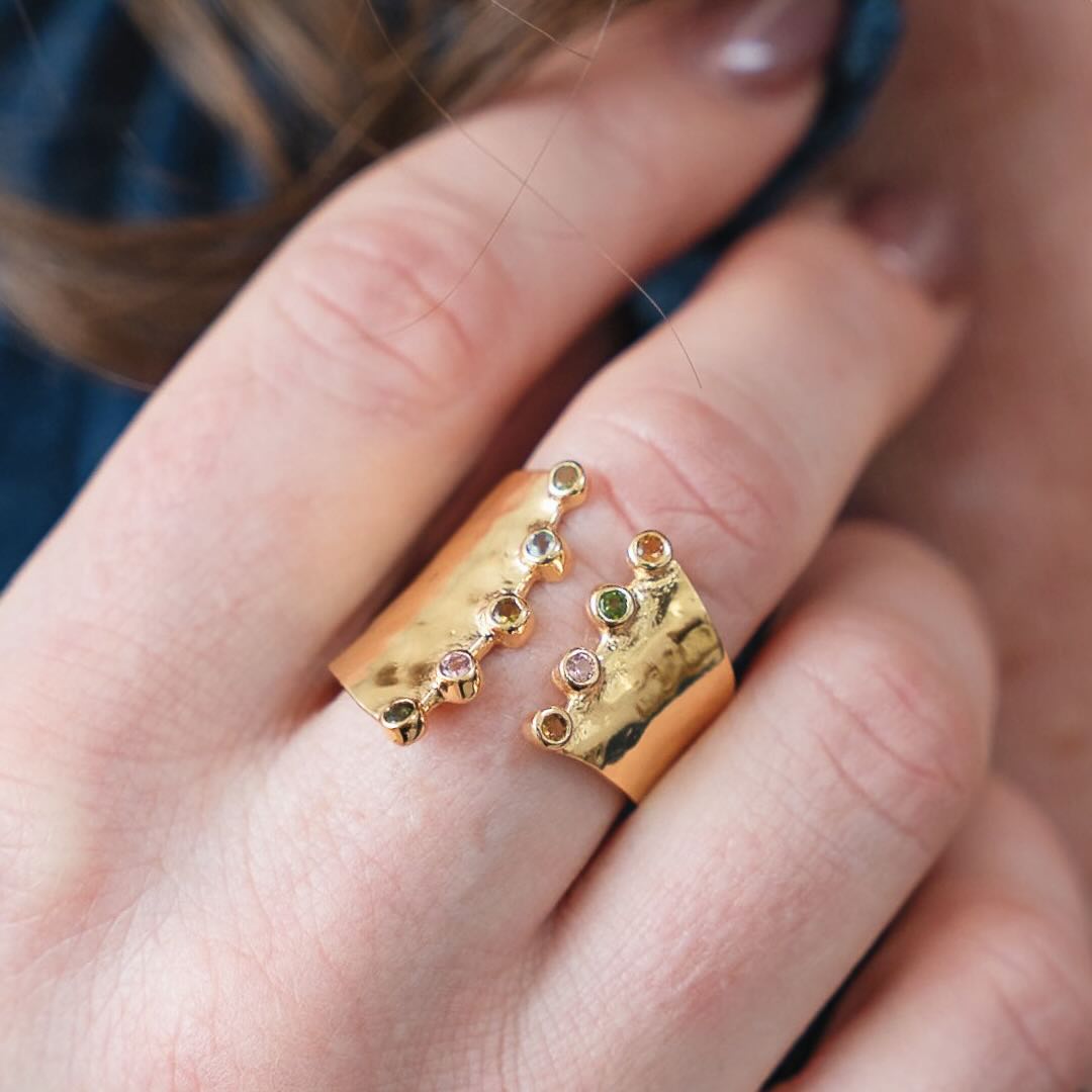 Bague en argent plaqué or et minis tourmalines