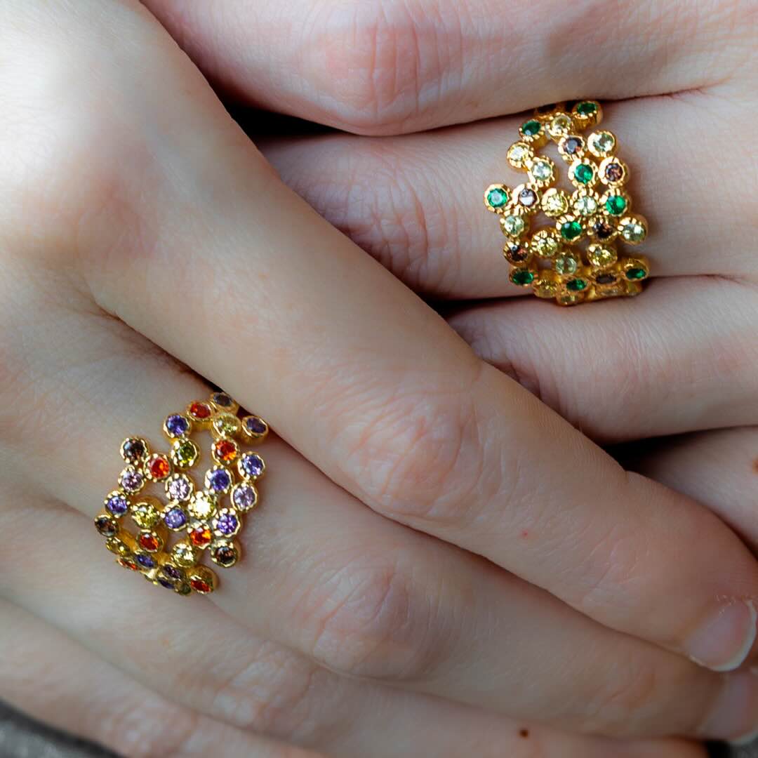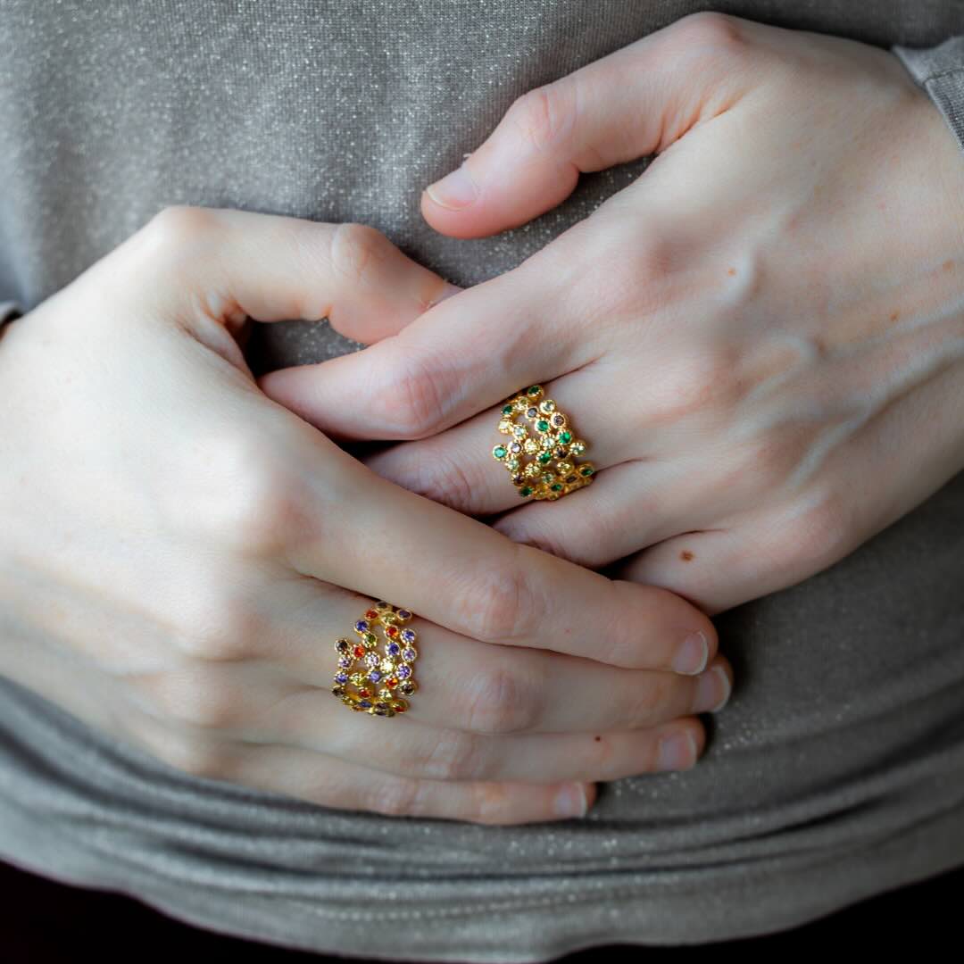 Bague en argent plaqué or et pierres semi-précieuses