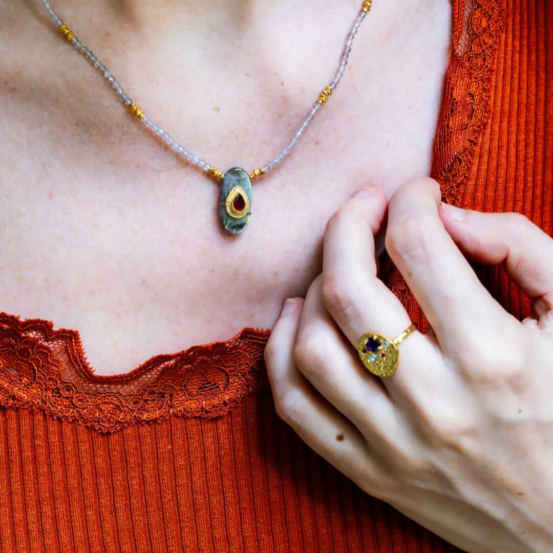 Les créations sont réalisées à la main, les couleurs et reflets peuvent varier d’un bijou à l’autre