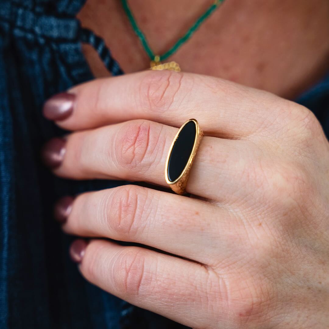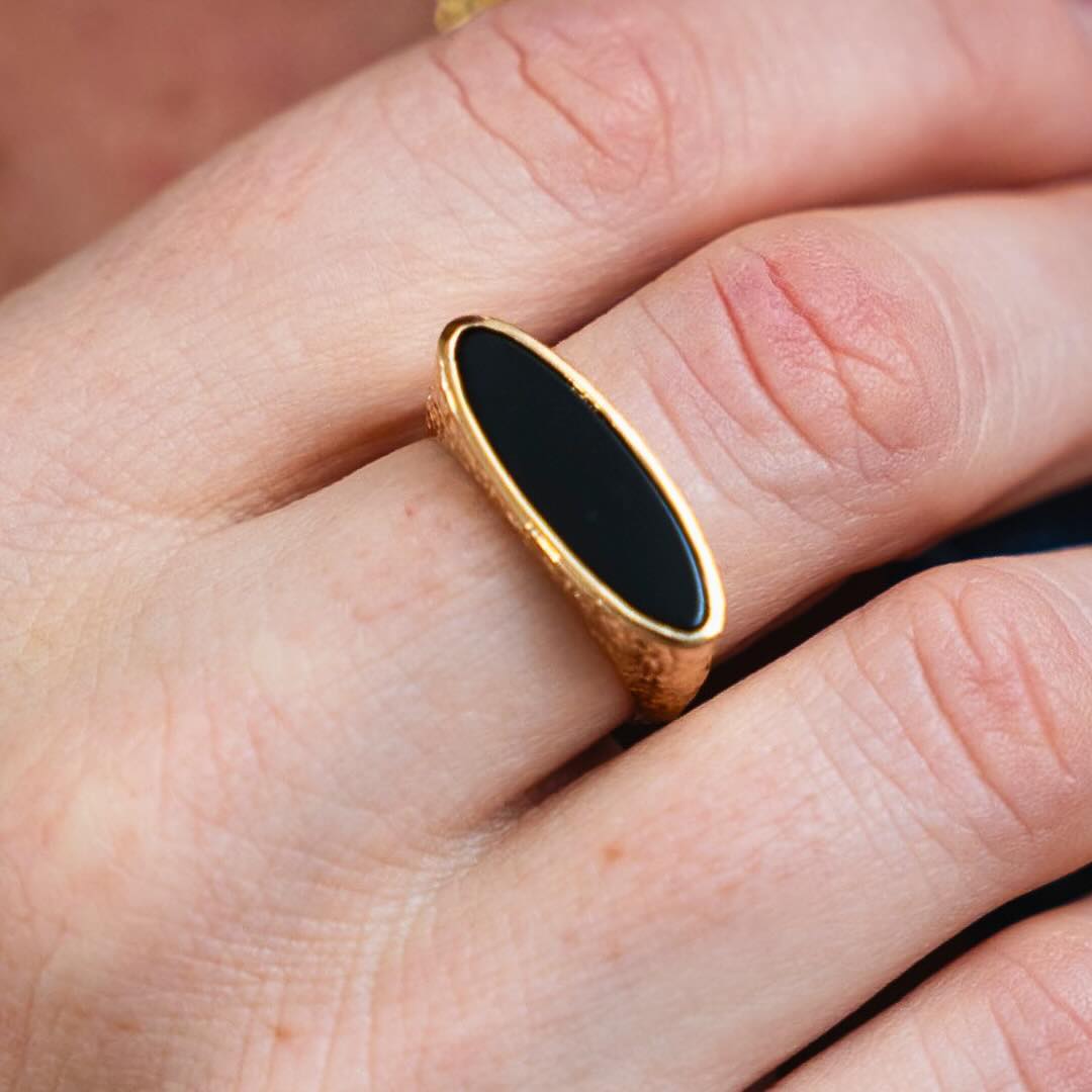 Bague en argent plaqué or et onyx noir