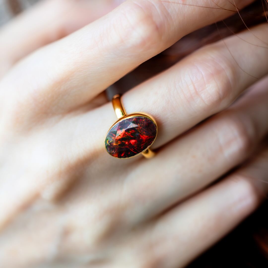 Pierre : opale noire aux reflets rouges