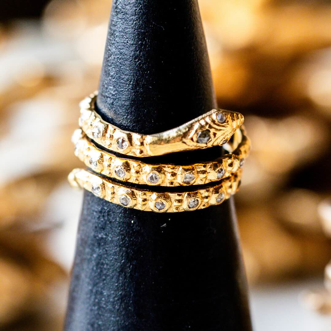 Bague en argent plaqué or et diamants poivre et sel (gris)