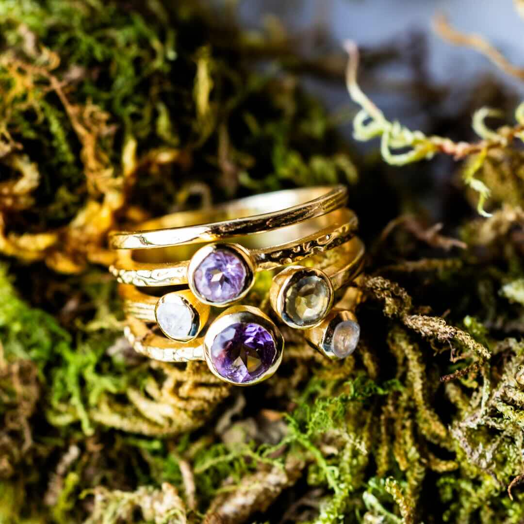 Bague en argent plaqué or avec multi-anneaux soudés ensemble et pierres semi-précieuses