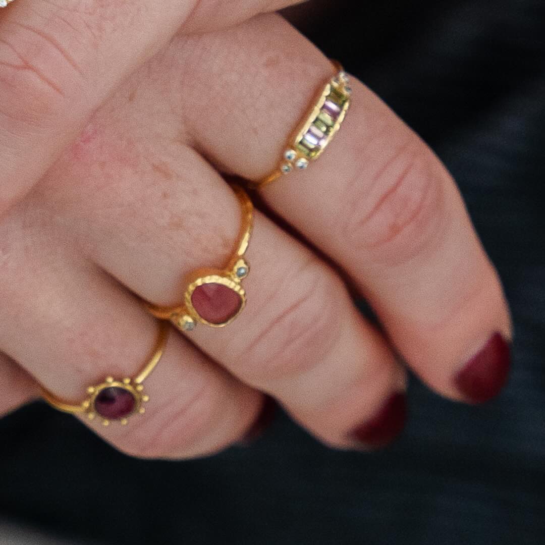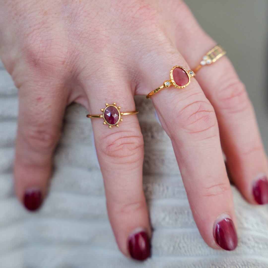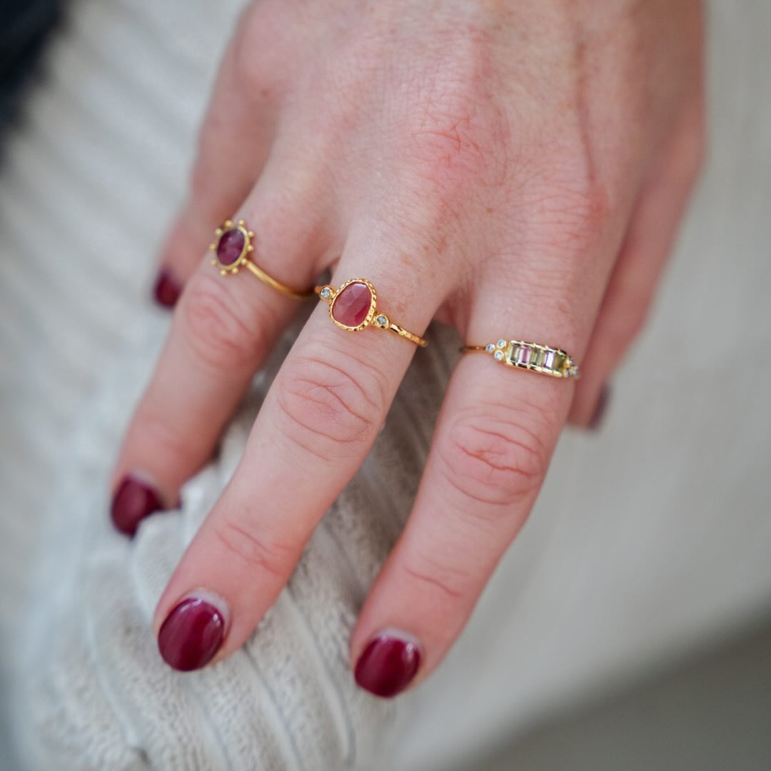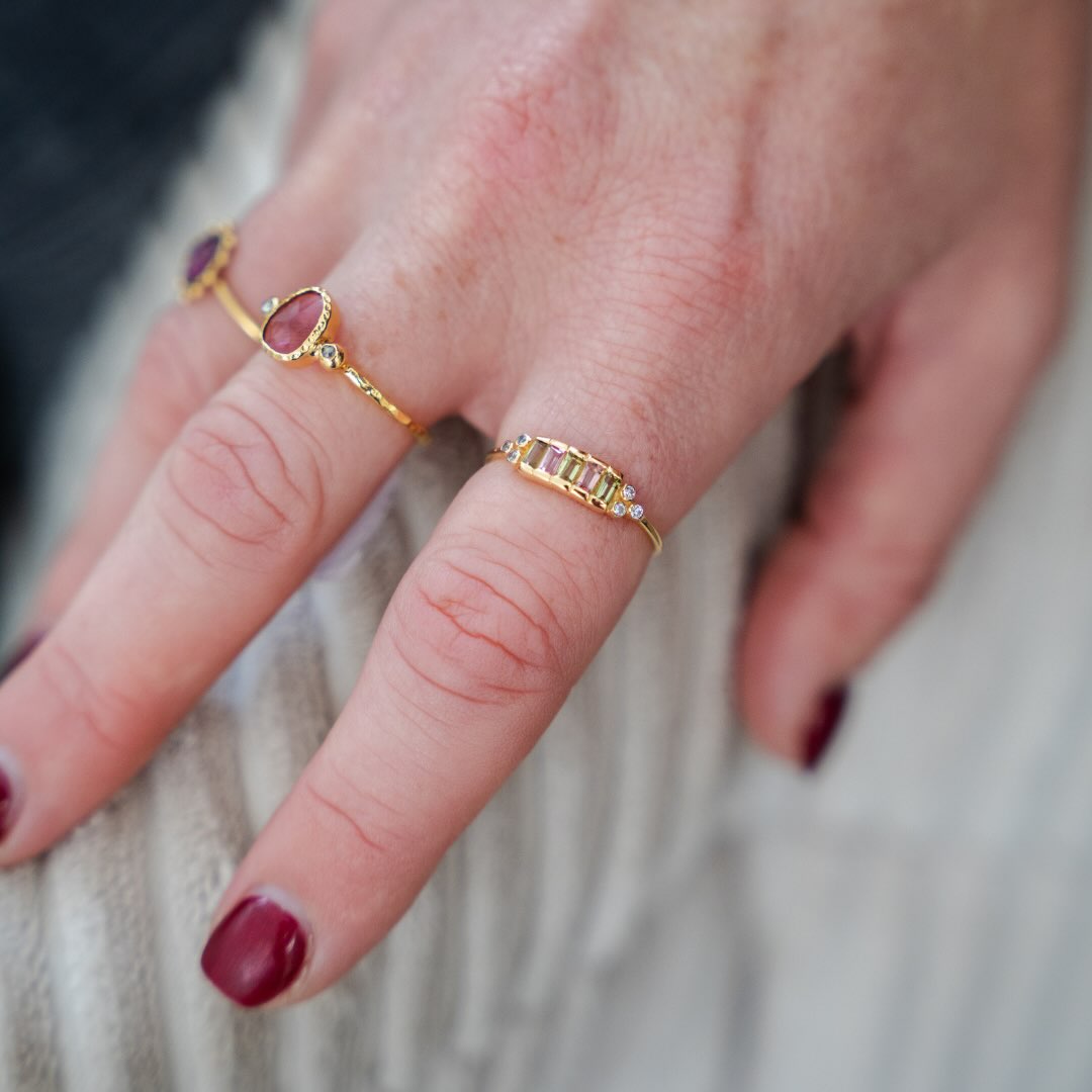 Bagues en argent plaqué or et tourmaline