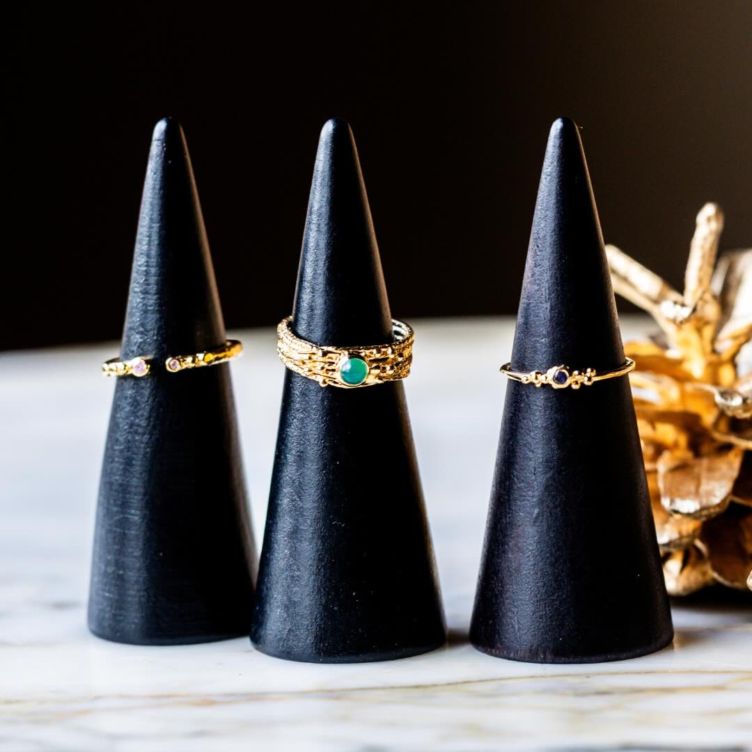 Note : retrouvez la bague en onyx vert, celle du centre, ici : https://www.lolatroisfontaines.com/produit/bagues-verde/