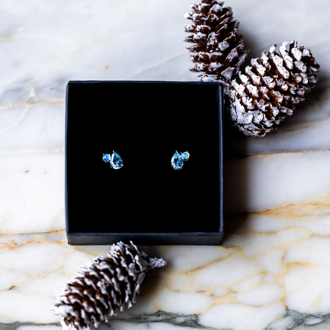 Petite boucles en argent, topaze et opale