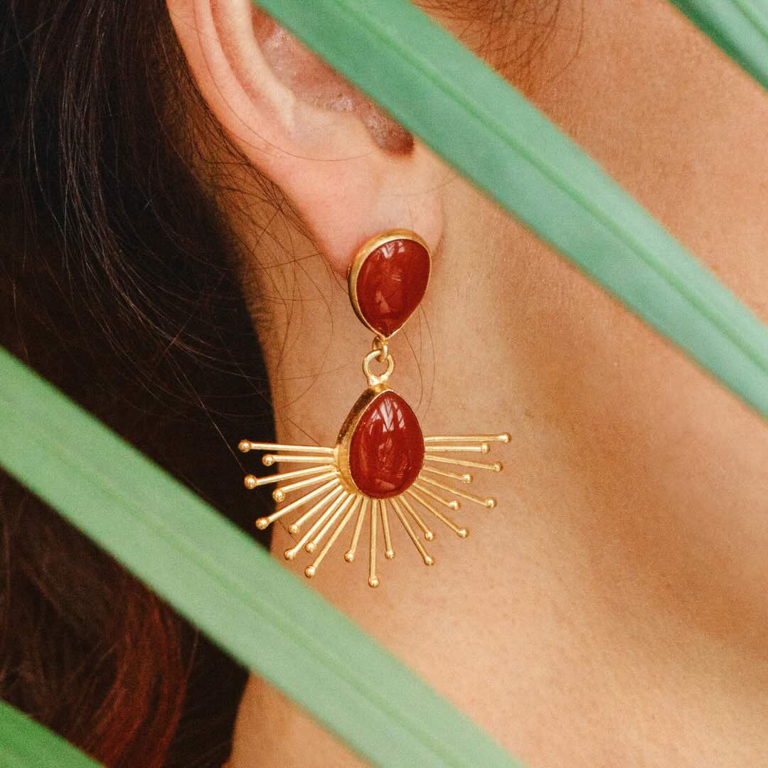 Boucles en plaqué or avec deux cornalines oranges en forme de goutte