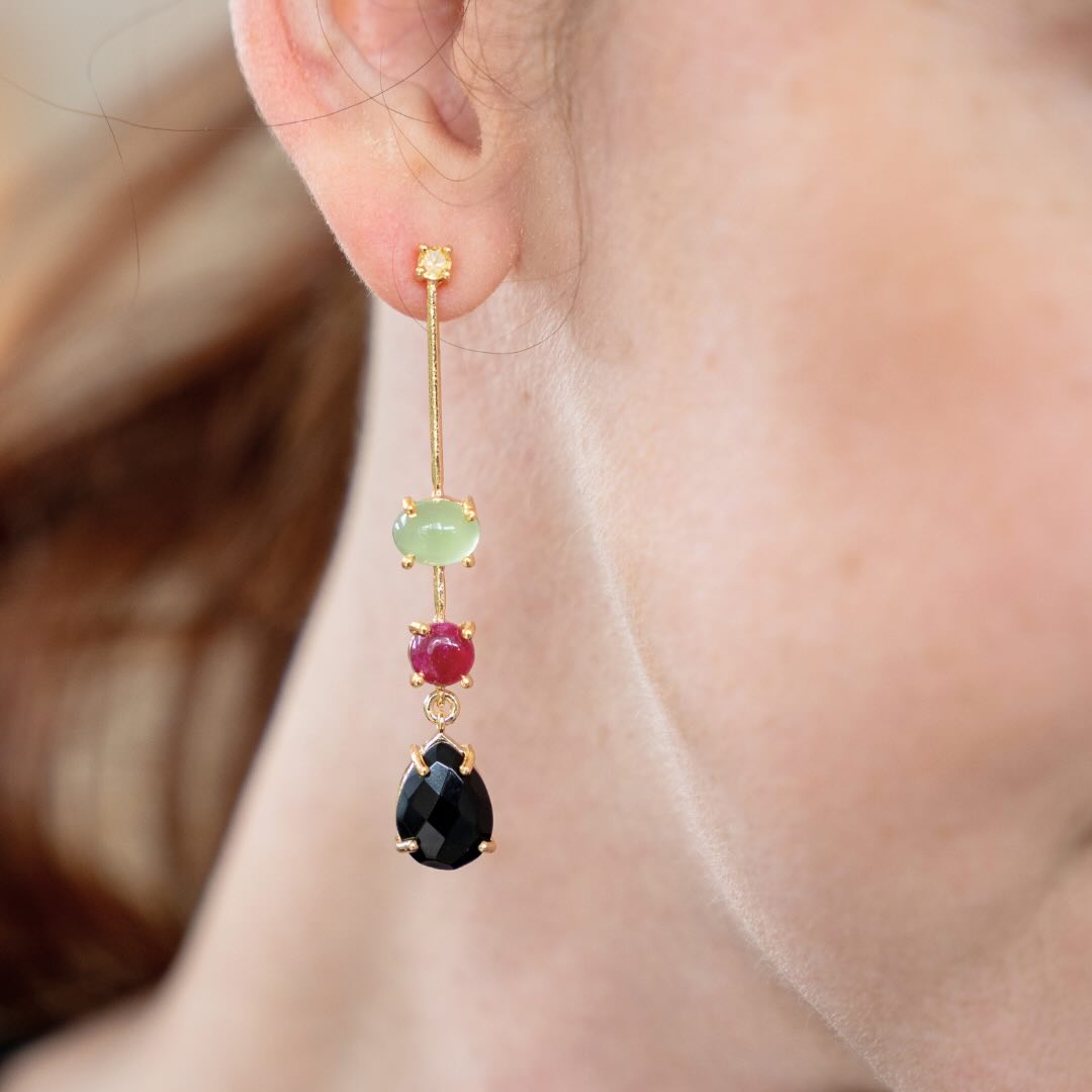 Boucles en argent plaqué or et pierres semi-précieuses