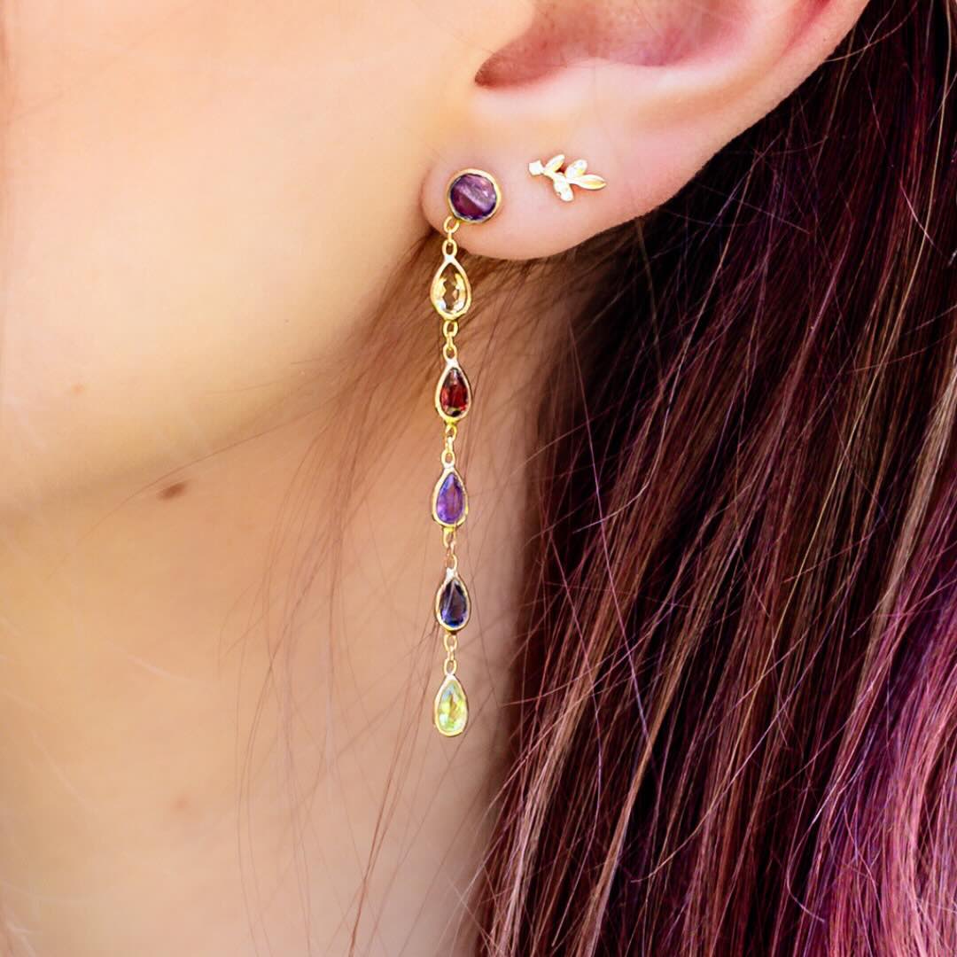 Boucles en argent plaqué or et cascade de goutte en pierres semi-précieuses