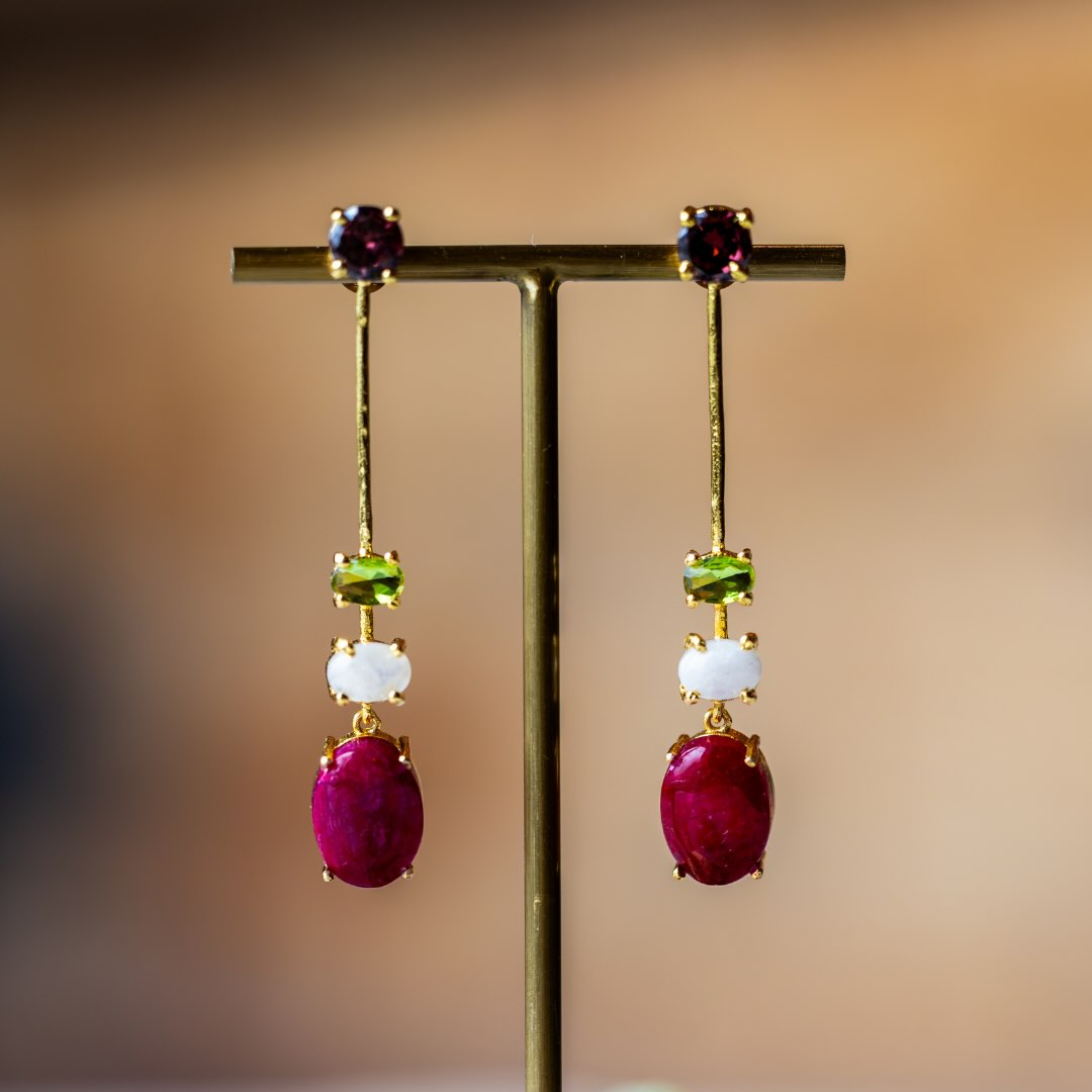 Boucles en plaqué or et pierres semi-précieuses