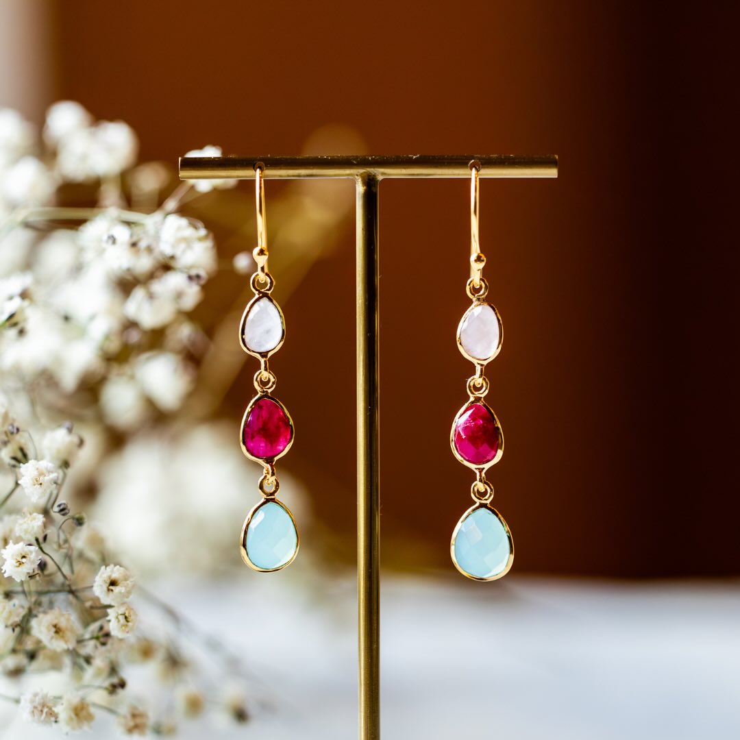 Boucles en argent plaqué or et pierres semi-précieuses