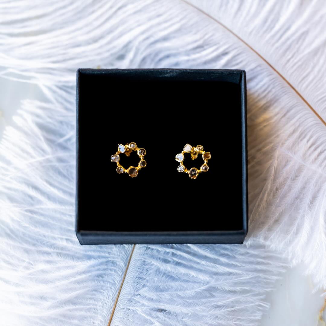 Boucles en argent plaqué or et diamant poivre et sel