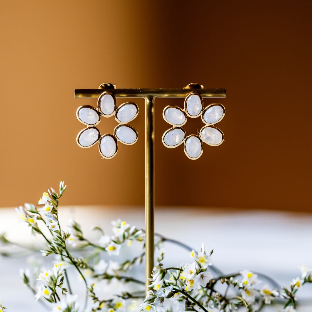 Boucles en argent plaqué or et pierre de lune