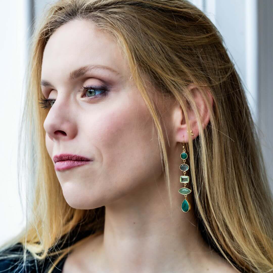 Pierre : onyx vert, labradorite, amethyste vert, jade, racine d’émeraude