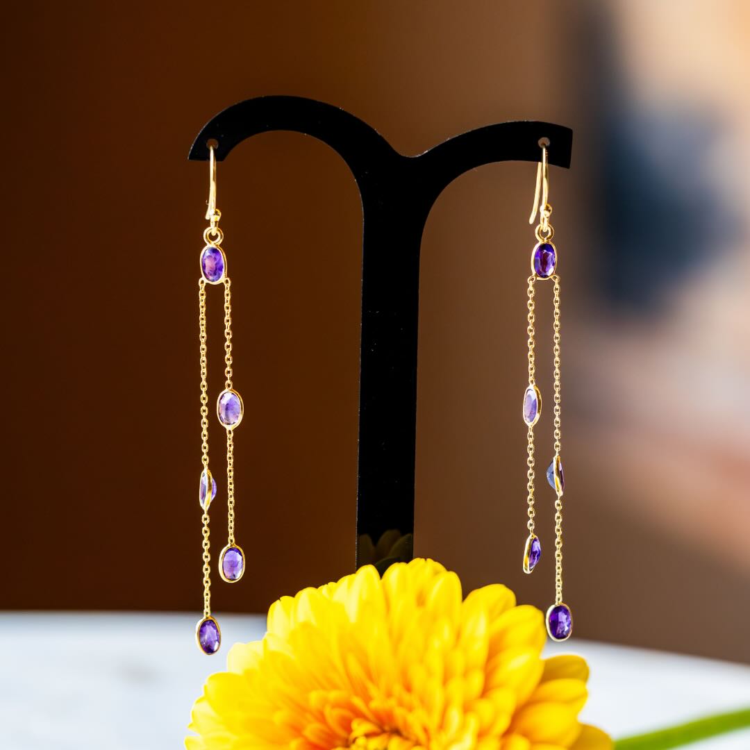 Boucles en argent plaqué or et améthyste