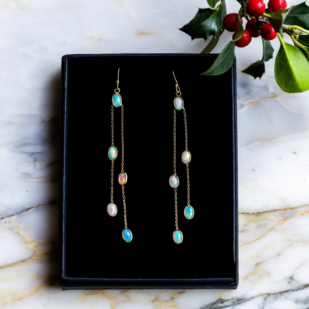 Boucles en argent plaqué or et opale d’Éthiopie