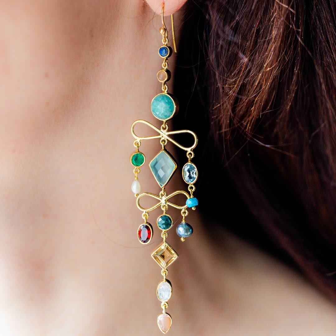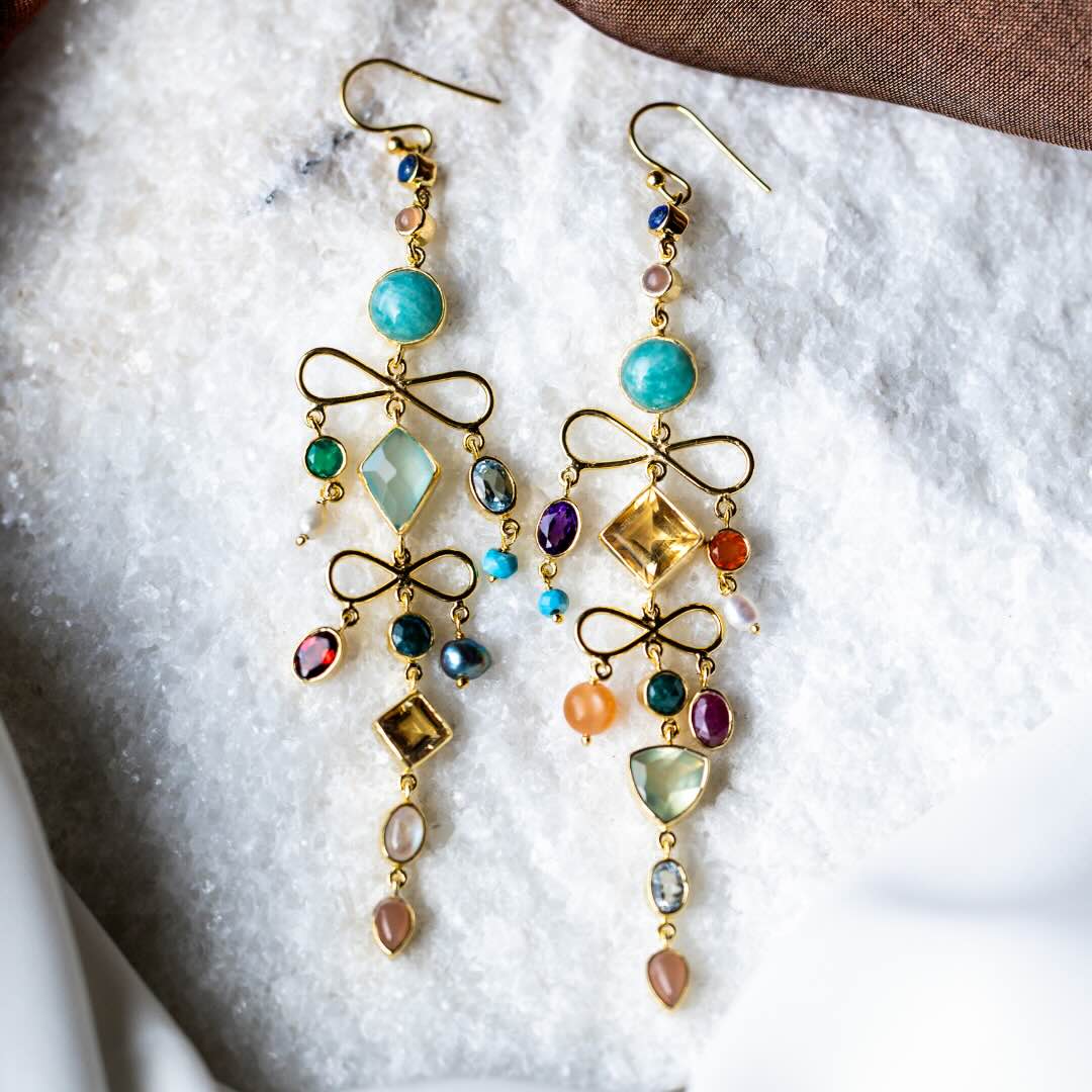 Boucles en argent plaqué or et pierres semi-précieuses