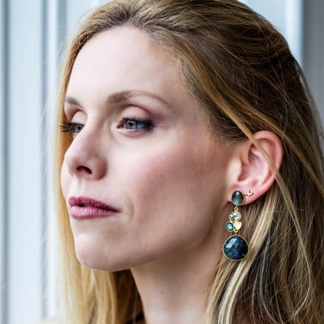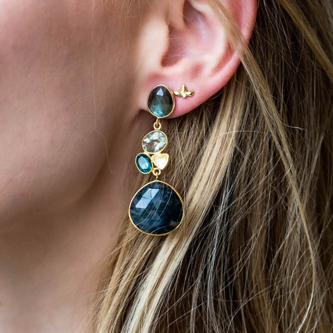 Boucles en argent plaque or et pierres semi-précieuses dans les teintes de vert