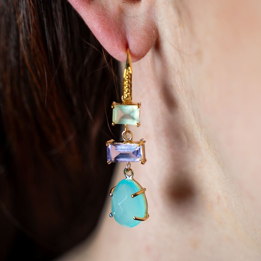 Boucles en argent plaqué or et pierres semi-précieuses