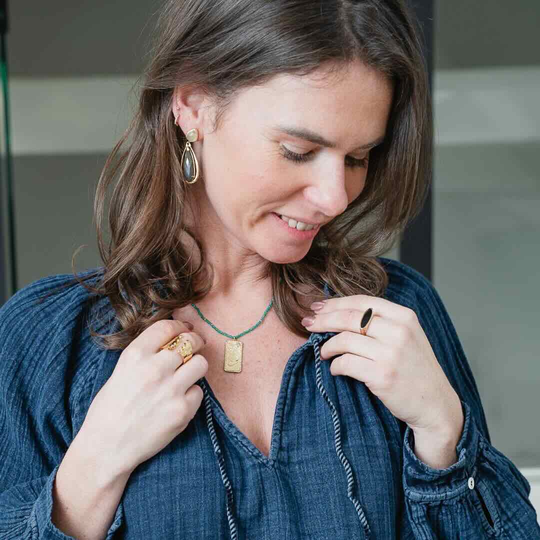 Les créations sont réalisées à la main, les couleurs et reflets peuvent varier d’un bijou à l’autre