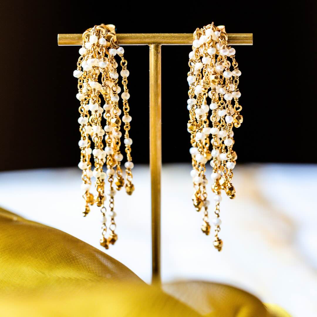 Boucles en argent plaqué or et perles