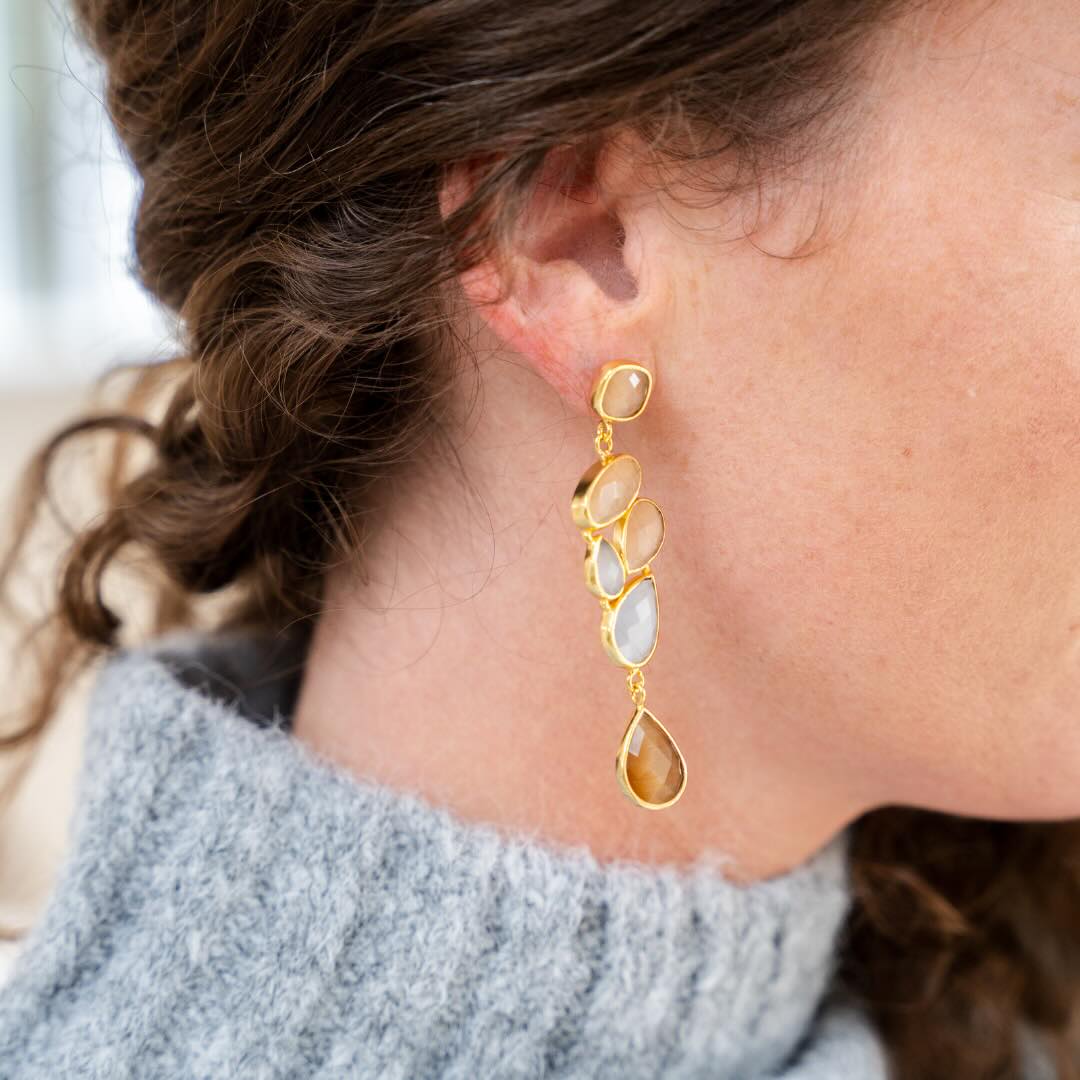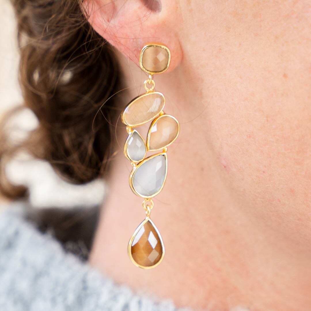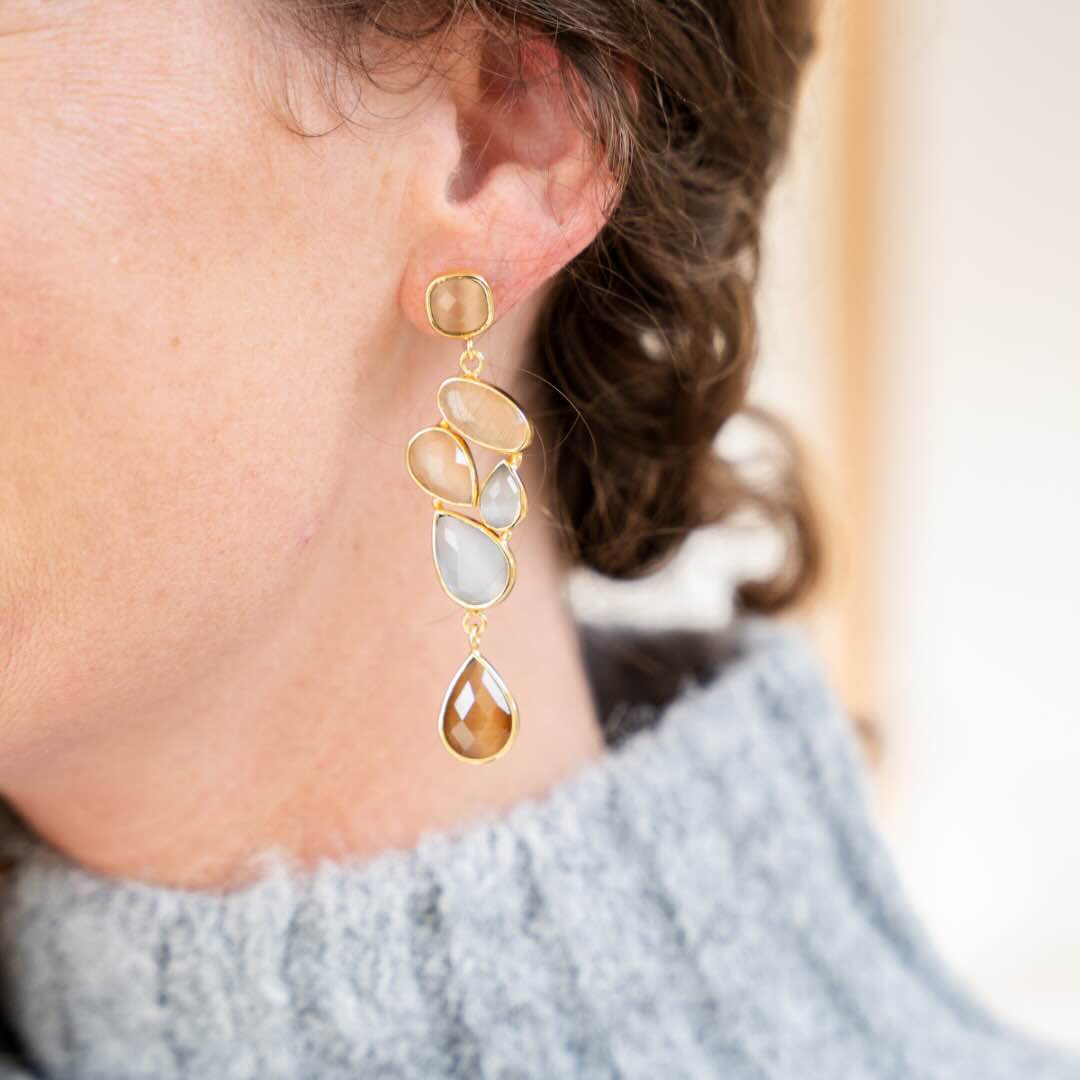 Boucles en plaqué or et pierres dans les tons de gris et beige