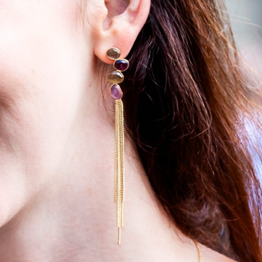 NOTE : les tourmalines sont des pierres dont les tons varient entre le rose, vert, gris, orange, bleu… Le bijou commandé peut avoir une combinaison de teintes différentes que celui de la photo