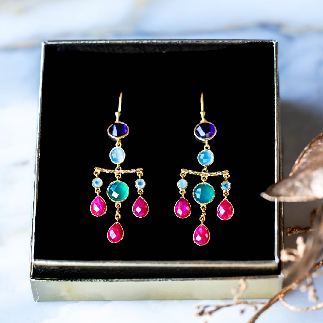 Boucles en argent plaqué or et pierres semi-précieuses