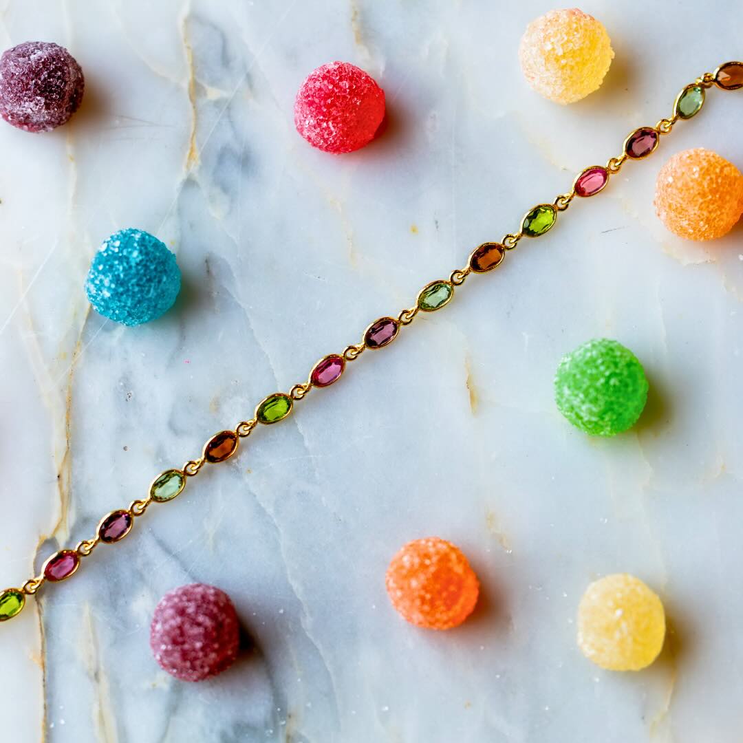 Bracelet en argent plaqué or et pierres semi-précieuses