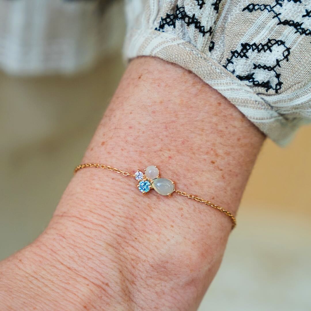 Bracelet en argent plaqué or et pierres semi-précieuses dans les teintes de bleu