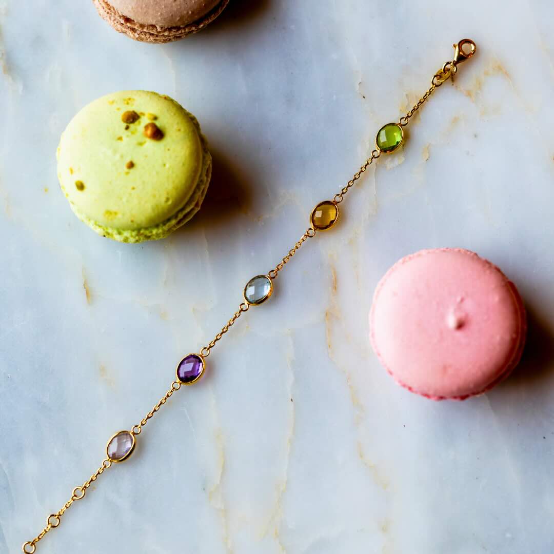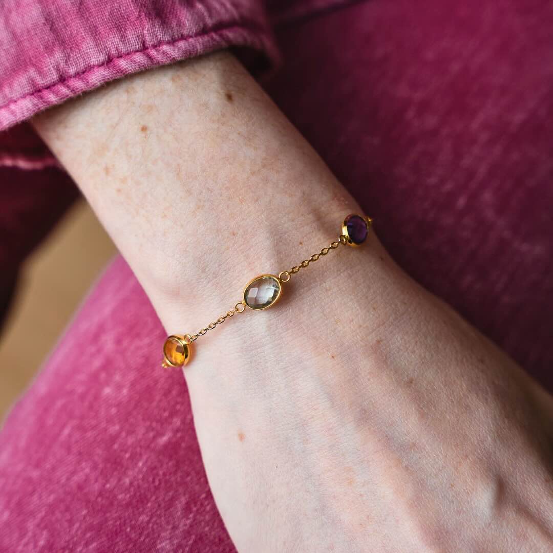 Bracelet en argent plaqué or et pierres semi-précieuses