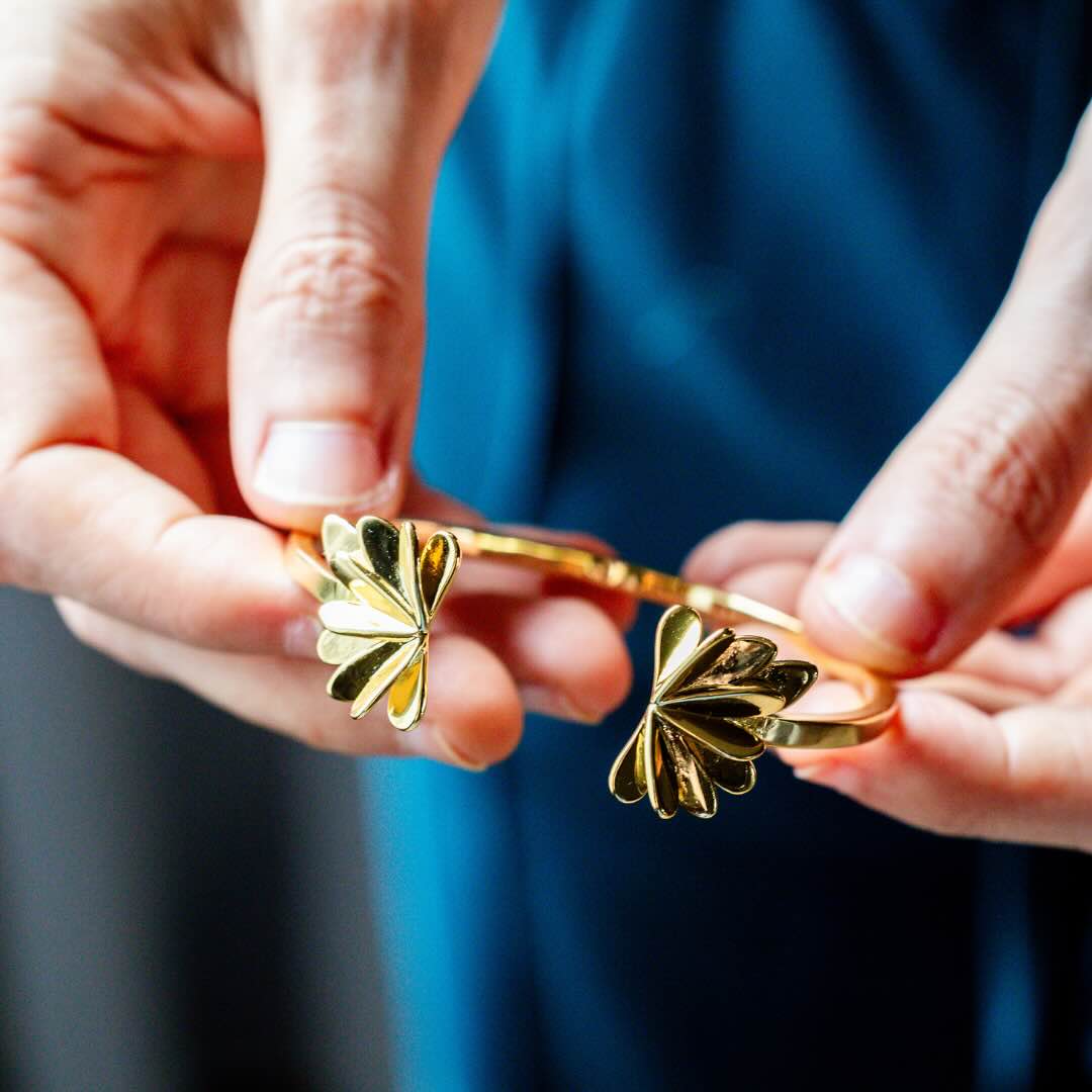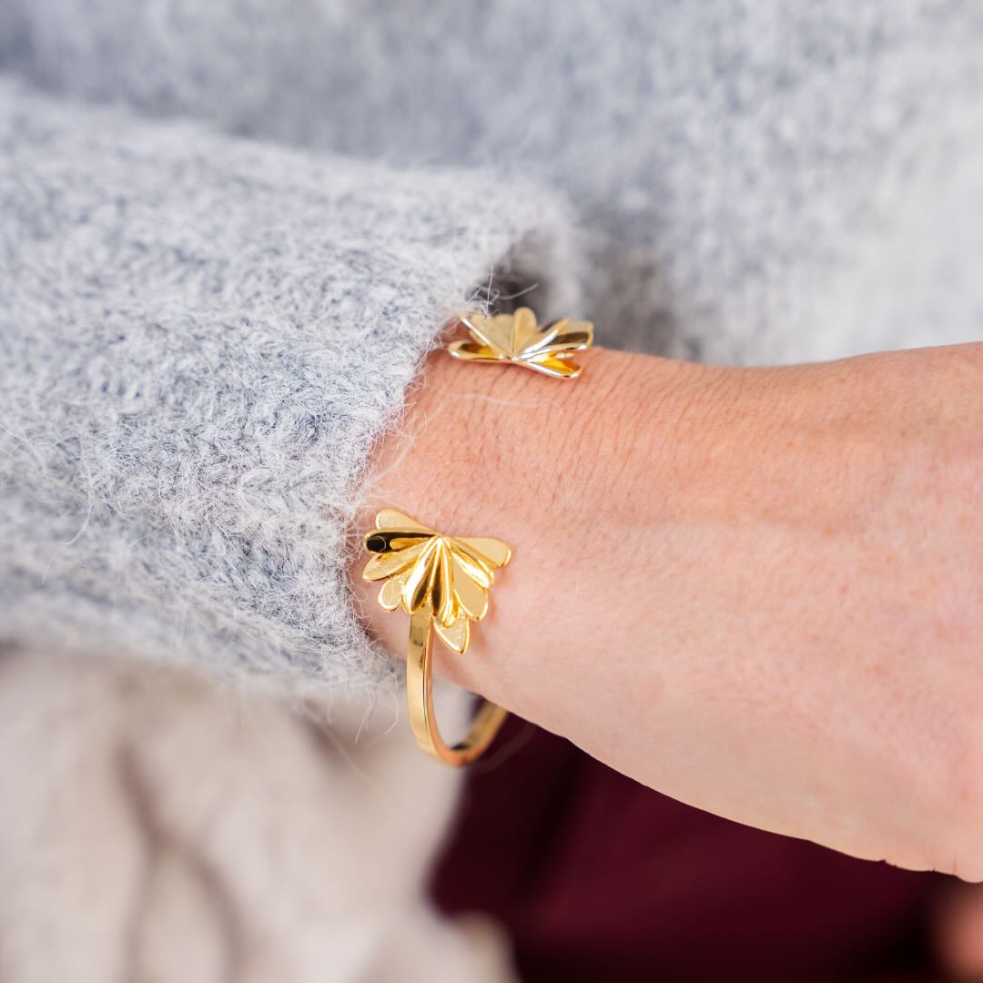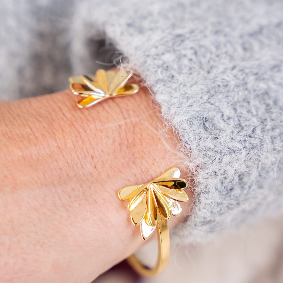 Bracelet en argent plaqué or et forme de demi-soleil ou demi-fleur