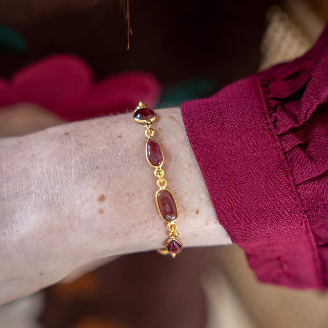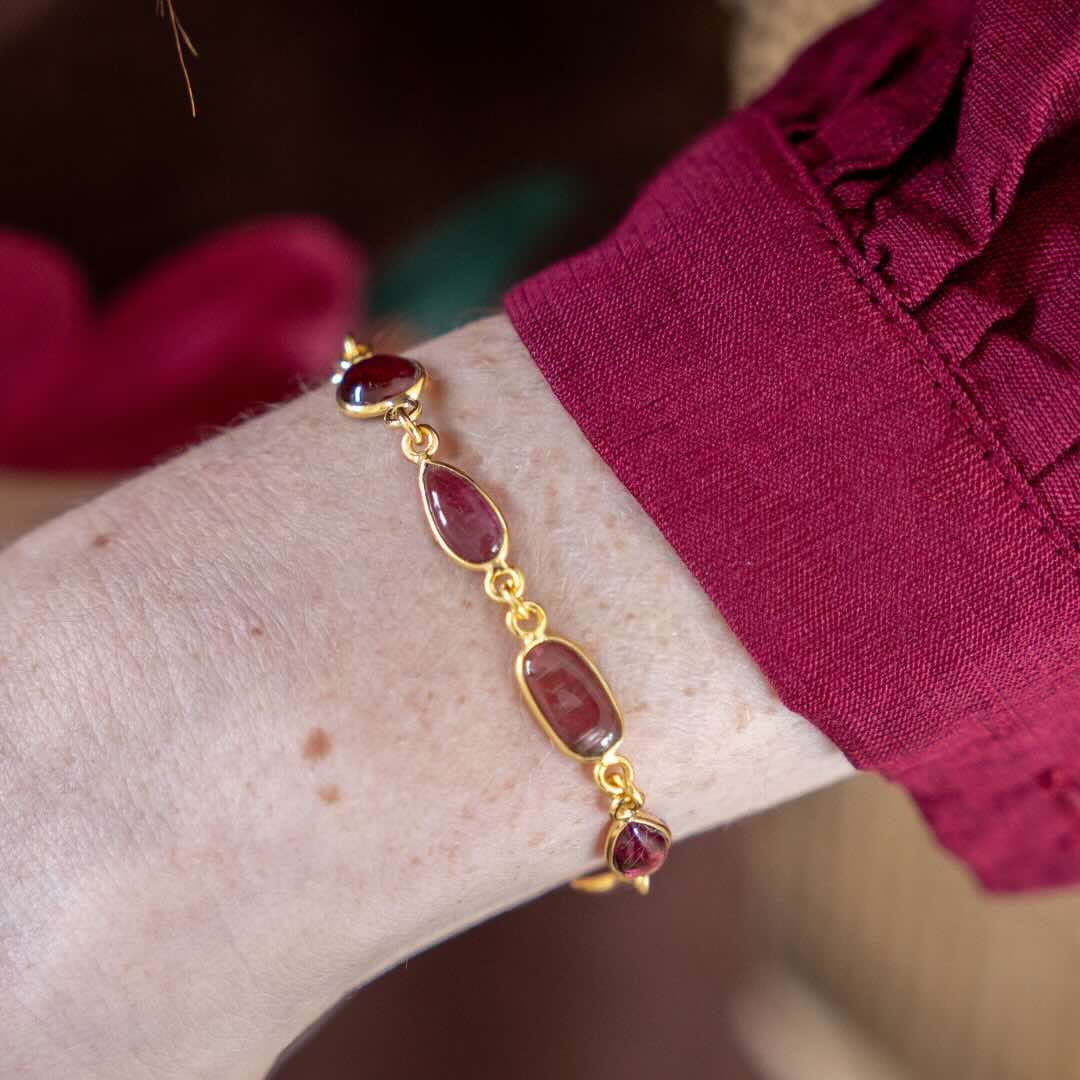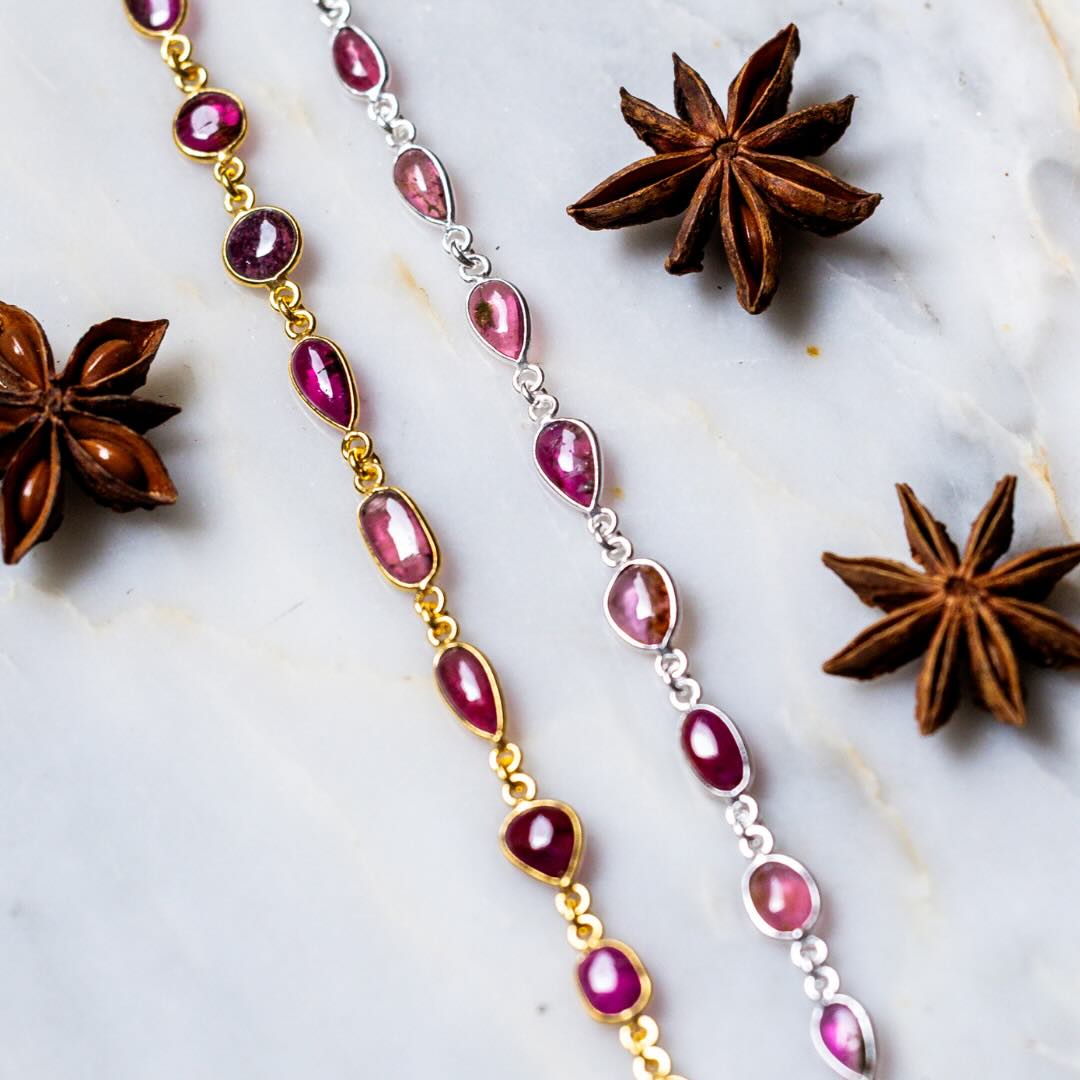Bracelet en argent ou argent plaqué or et tourmalines roses