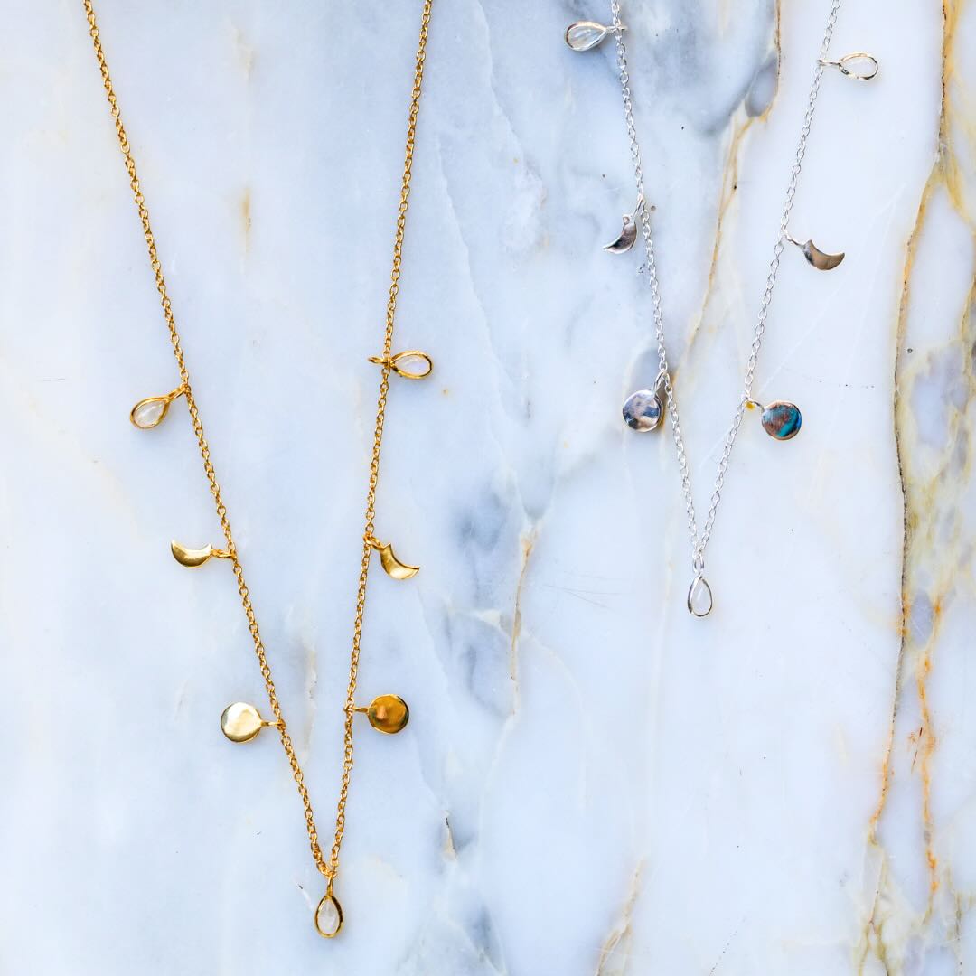 Collier en argent ou plaqué or avec cycle lunaire et pierre de lune
