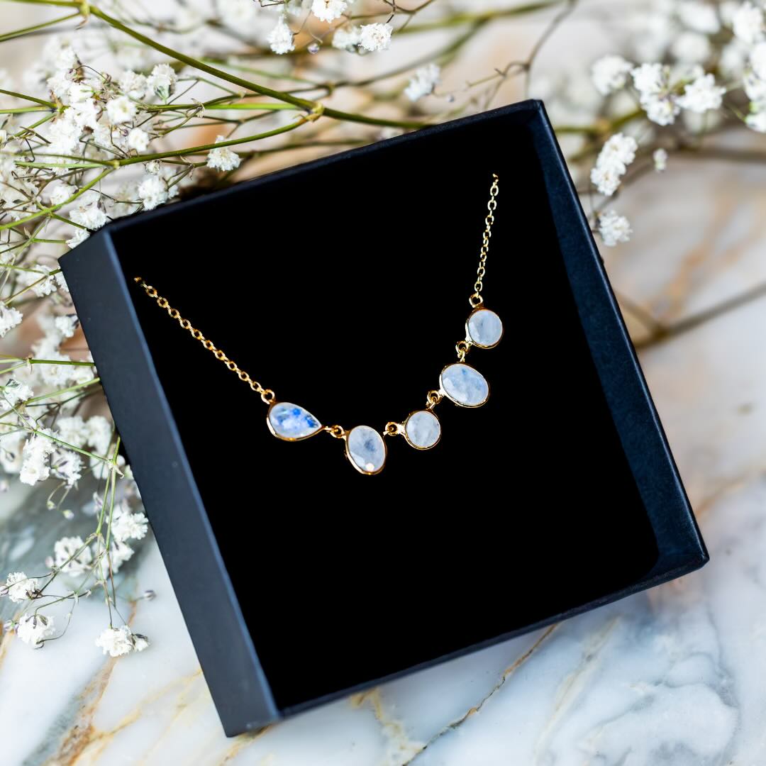 Collier en argent plaqué or et pierre de lune
