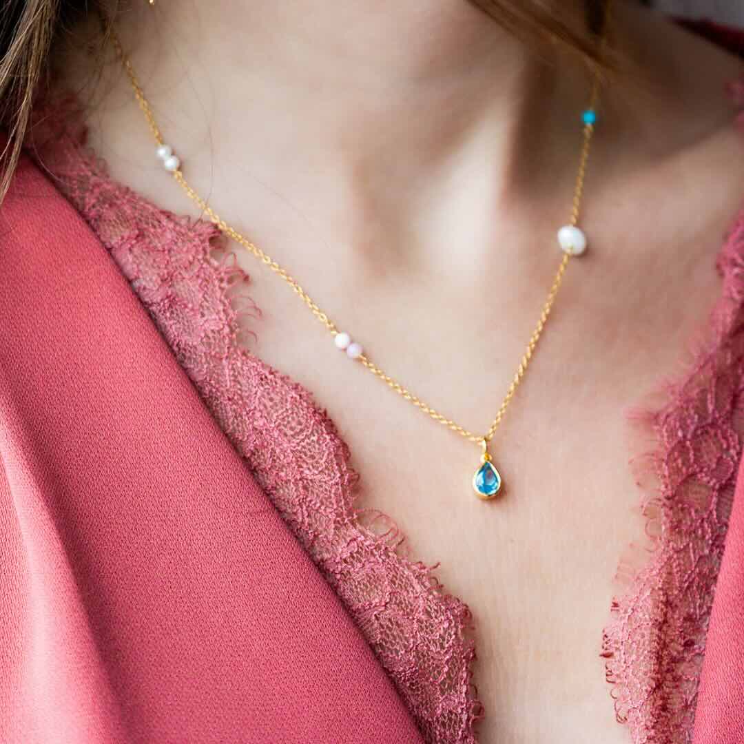 Collier en argent plaqué or et pierres semi-précieuses