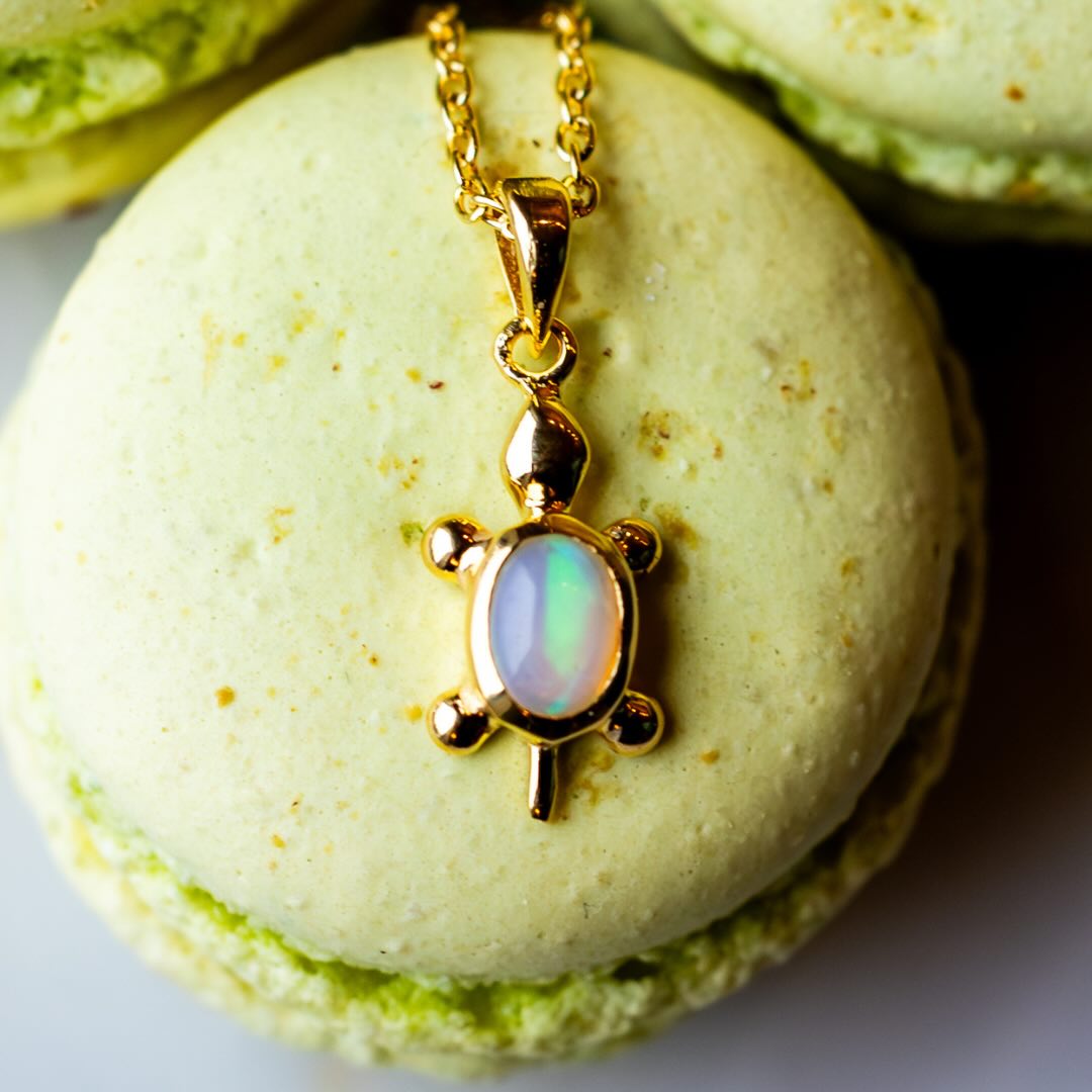 Collier en argent plaqué or et opale d’Éthiopie