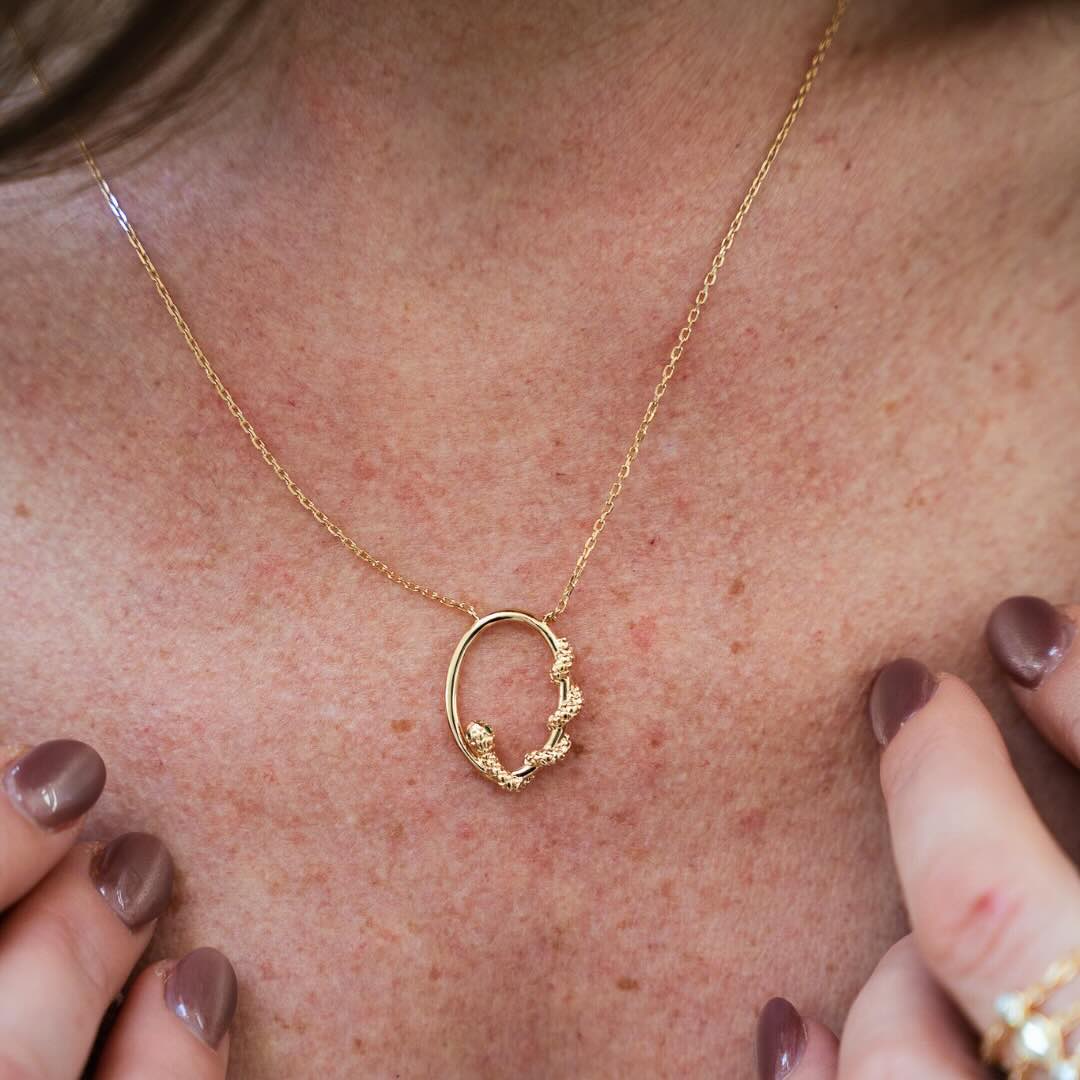Dimensions : Chaine réglable entre 40 et 45cm, pendentif oval de 2cm de long
