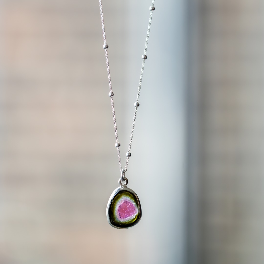 Collier en argent et tourmaline melon d’eau